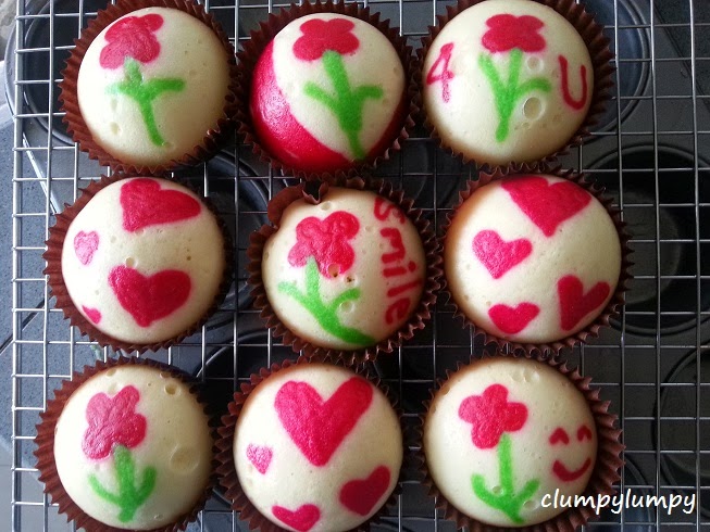 I'm quite pleased with how they turned out.. the texture of the cupcakes were better than i expected them to be.. it was a little springy and sponge-like.. taste-wise.. it was bland.. probably add some flavoured essence the next time..